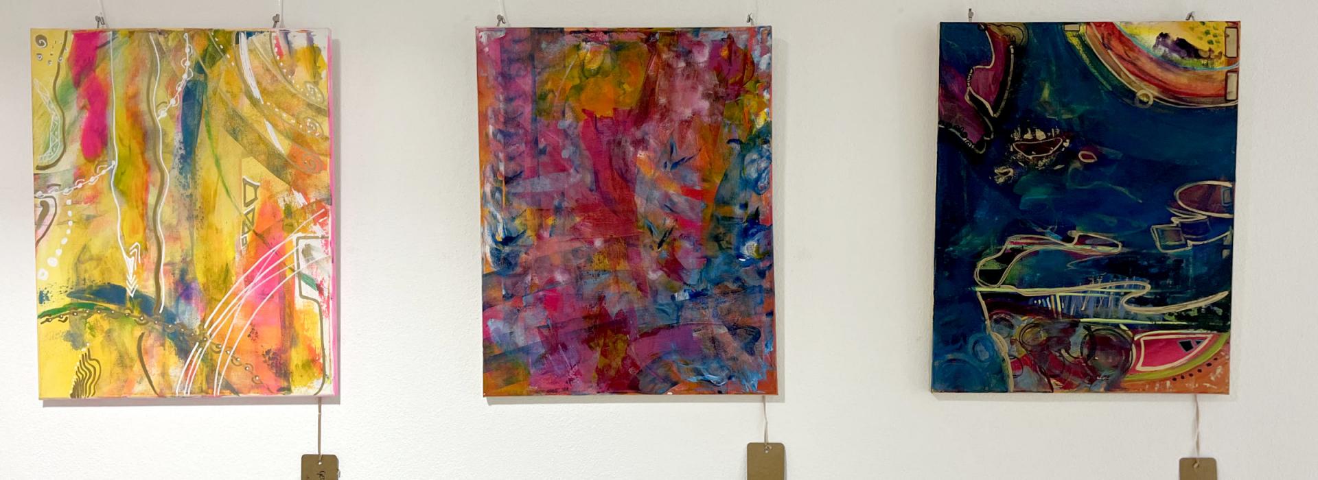 In den drei Semestern meines Studiums „Expressive Arts in Social Transformation“ habe ich gelernt, Kunst als freien, niedrigschwelligen Ausdruck zu verstehen – ohne Druck, ohne lähmenden Perfektionismus. So entstehen meine Bilder: spontan, experimentierfreudig und ergebnisoffen.